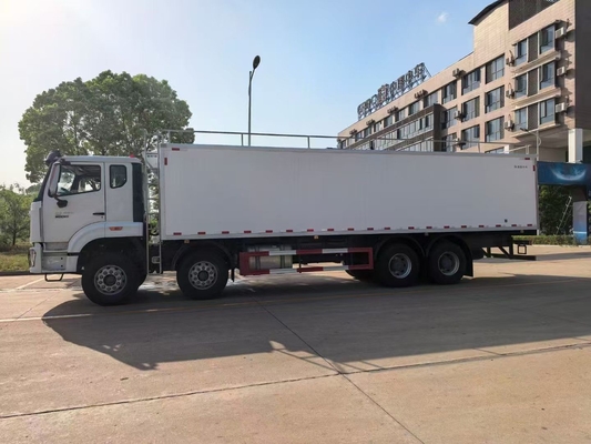 Sinotruk HOWO refrigerated wagon with meat hook vehicles is a specialized cold chain transport truck designed for the safe and hygienic transport of hanging meat carcasses.