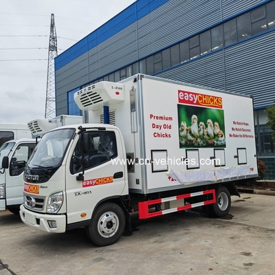 The Foton 4x2 day-old baby chicken transport truck is a specialized refrigerated or insulated van used for safely transporting newly hatched chicks (usually less than 24 hours old) from a hatchery to a farm. The key feature of these trucks is the controlled environment to ensure a high survival rate for the delicate cargo.